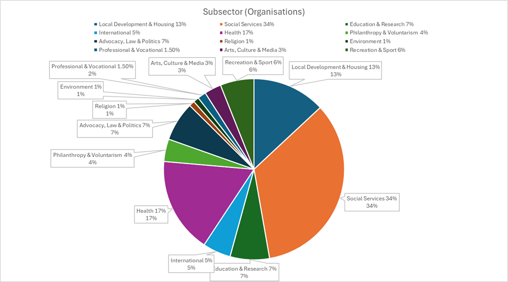 We saw less movement in the Local Development and Housing Subsector, with a 44% decrease in recorded advertised roles (from 41 in Q4 2024 to 23 in Q4 2025) and in the Philanthropy and Voluntarism Subsector, with a 58% reduction in recorded advertised roles versus Q4 2024 (down to 5 in Q4 2025 from 12 in Q4 2024). Other subsectors saw a stable or consistent number of advertised roles.